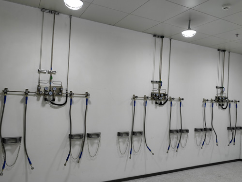 3.5N離氮氣、氦氣、預定氣主供水管線線利用OD1/4”(6.35mm)的供水管線,支線利用OD1/4”(6.35mm)的供水管線。用手工焊接三通管決定支路來對產品來進行供氧。